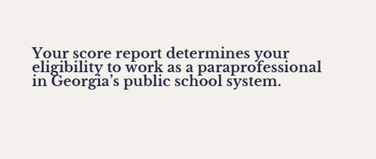 Your score report determines your eligibility to work as a paraprofessional in Georgia’s public school system.