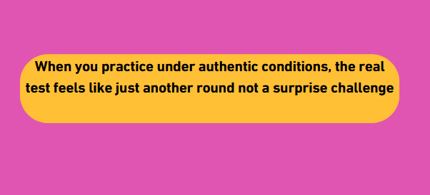 When you practice under authentic conditions, the real test feels like just another round not a surprise challenge.