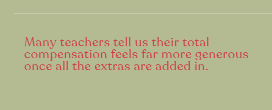 Many teachers tell us their total compensation feels far more generous once all the extras are added in.