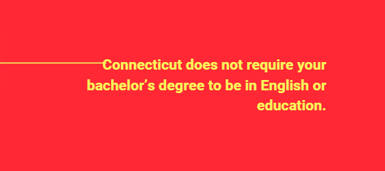 Good news: Connecticut does not require your bachelor’s degree to be in English or education. As long as you have a regionally accredited bachelor’s degree in any subject, you’re eligible to pursue certification.